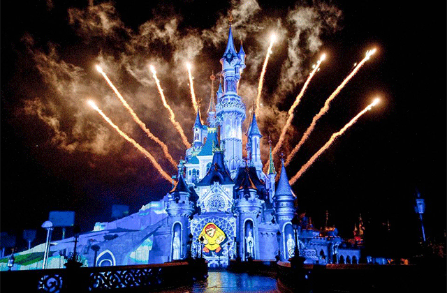 A highlight of Disneyland, the Disney Castle Illuminations is a show set against the backdrop of Sleeping Beauty Castle in Disneyland Park. Fireworks, lighting effects, projection mapping, and iconic Disney film music add to the show's emotional impact.