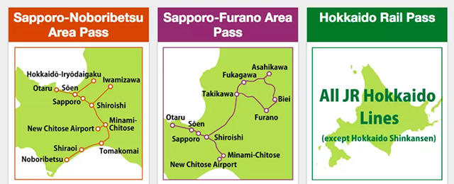 The Hokkaido Rail Pass combines the Sapporo-Noboribetsu Area Pass and the Sapporo-Furano Area Pass, allowing you to freely travel from Noboribetsu to Furano and Biei for 5 days. You can use all JR trains and travel throughout Hokkaido, from New Chitose Airport to Sapporo, Otaru, Noboribetsu, Furano, and Biei.