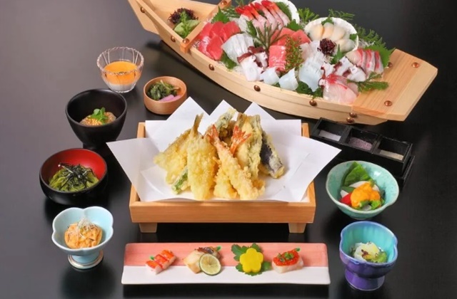 Sashimi Funamori (special seafood assortment including tuna, squid, shrimp, scallops, and one lobster per person)
