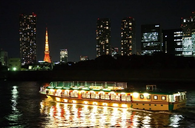 The cruise ship is surprisingly clean and tidy, with tatami (Japanese flooring) flooring inside. The moment you board, you'll feel a sense of Japanese culture. The Yakatabune Dinner Cruise begins with a toast, transforming into a banquet. Afterward, you'll enjoy a course meal while gazing out the windows at the breathtaking Tokyo nightscape. The cruise also offers unlimited sake, beer, wine, and other alcoholic beverages, allowing you to truly immerse yourself in Japanese culture.