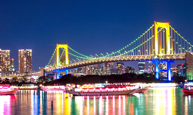 Duration: 3 hours 30 minutesCruise the Tokyo night sea aboard a traditional Japanese "yakatabune." Funasei Cruises, a renowned cruise company with a long history and tradition, offers a nostalgic atmosphere that feels like a time travel. Funasei's yakatabune boasts spacious and comfortable interiors as well as an open rooftop observation deck. Passing under the Rainbow Bridge while feeling the cool sea breeze is truly breathtaking! Enjoy stunning views of Skytree and the Rainbow Bridge, and savor delicious authentic Japanese cuisine.