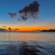 Behind a fantastic sunset,
