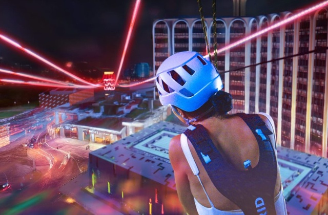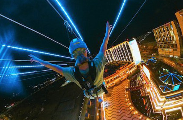 화려한 도시 호텔 뷰를 보며,짚라인은 어때요?