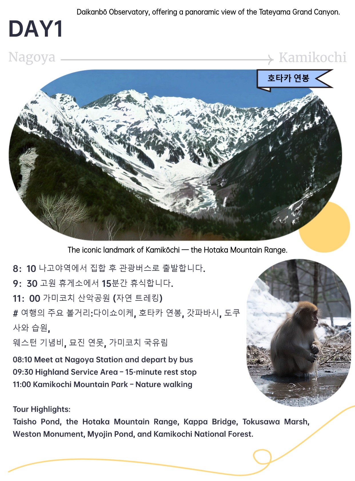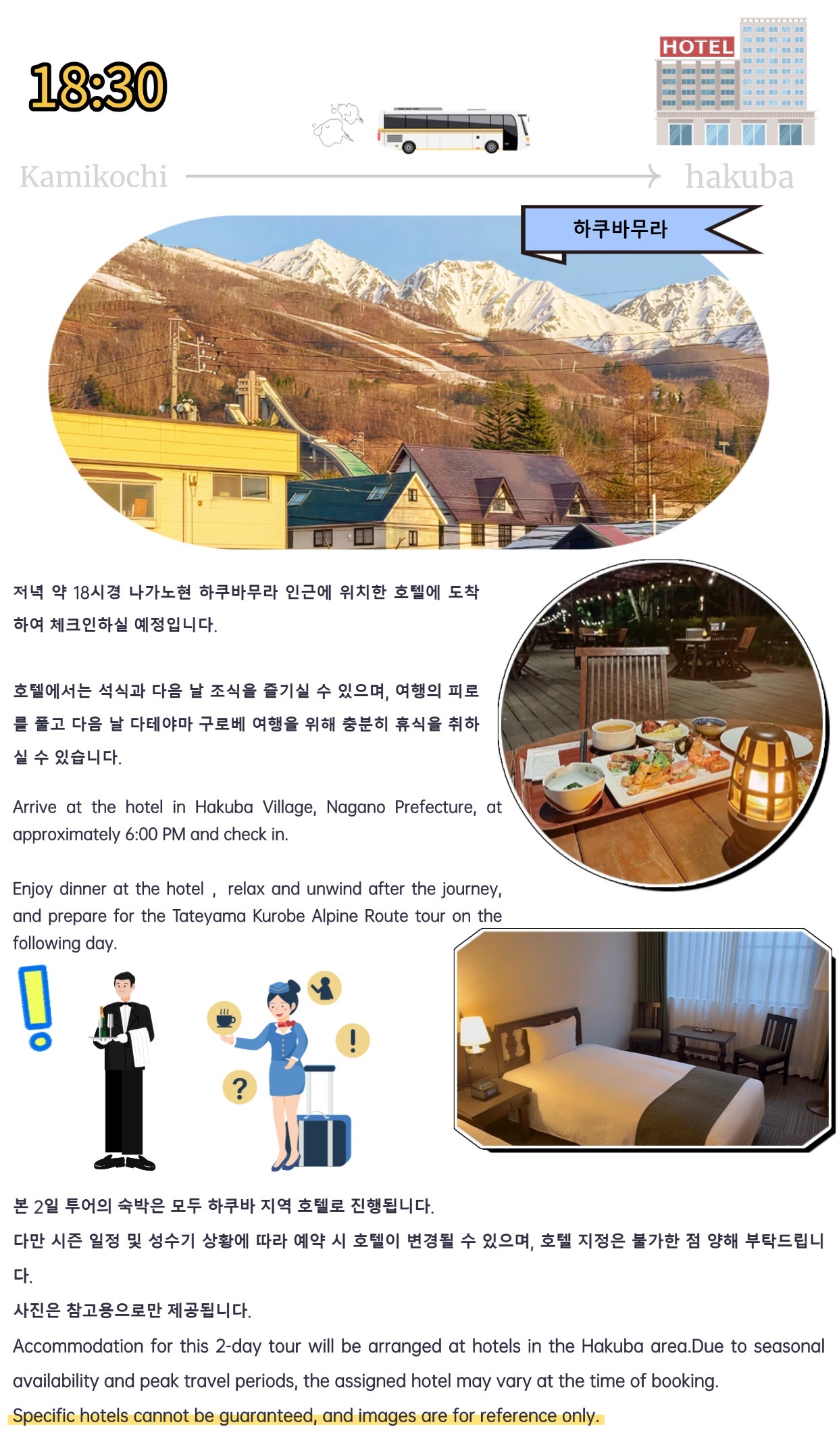 We introduce a tour that departs from Nagoya Station and tours Kamikochi and Tateyama Kurobe for 2 days and 1 night. A comfortable hotel will provide 1 dinner and 1 breakfast, so if you are looking for a tour that allows you to go comfortably without worrying about accommodation, meals, or complicated transportation, we recommend this tour!