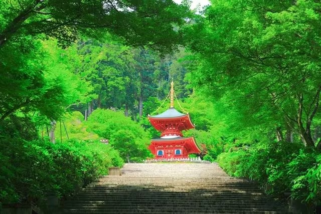 Visit the historic Katsuo-ji Temple. Just 30 minutes from downtown Osaka, Katsuo-ji Temple is nestled in the lush forests of Minoo National Park and has long been revered as the 'Temple of Victory'. It's the perfect place to relax and unwind while admiring the beautiful scenery all year round, as well as the Kachi Daruma, which symbolizes this place. A visit to the souvenir shop right next to the temple is also a great option, as it offers a variety of souvenirs that can only be purchased here.