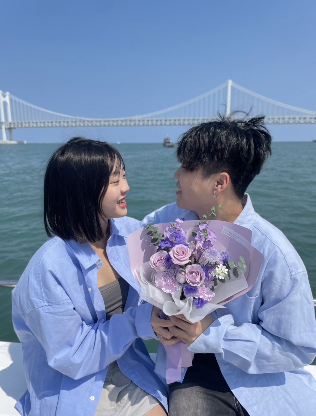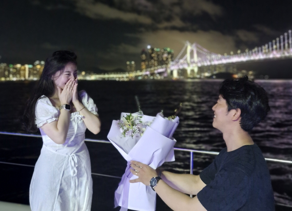 Propose to your loved one while looking at the romantic scenery of Busan. Enjoy the refreshing breeze on a large 47-seater yacht and spend a special 50 minutes with just the two of you. We provide everything you need for a proposal, including flowers, champagne, cake, table setting, fireworks, bubbles, photo and video services.