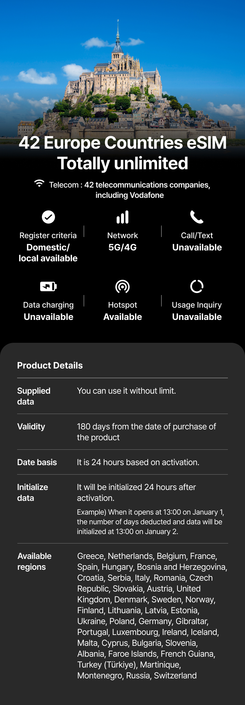 Introducing the 'Yousimsa' unlimited eSIM, allowing you to enjoy unlimited data freely without worrying about data limits. You can use it without speed restrictions for the number of days you purchased, and it is linked to major local carriers to maintain a stable connection anytime, anywhere. In particular, Yousimsa eSIM is a member of GSMA (Global System for Mobile Communications Association) and can be used safely as a global standard.