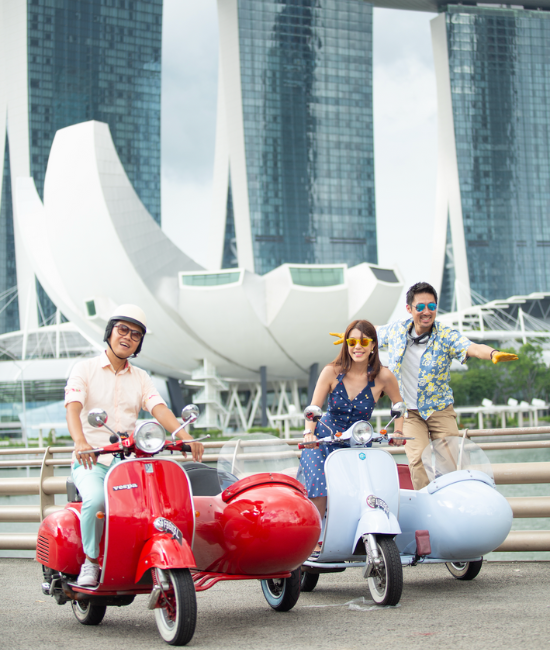 Step into a classic Singapore Vespa Sidecar and feel the excitement of cruising through the city streets with the wind in your hair and the skyline unfolding all around you. Each of the three unique tour routes immerses you in Singapore’s rich history, vibrant culture, and local charm. Glide past colorful murals, iconic landmarks, and lively neighborhoods as your guide shares captivating stories and insider insights. Stop to uncover hidden gems, snap photos of charming streets, and fully experience the energy of Singapore’s multicultural districts. Whether wandering through Haji Lane’s trendy boutiques, exploring the heritage of Joo Chiat and Katong, or soaking in the sights and sounds of Chinatown and Little India, every moment is intimate, memorable, and thrilling. Even Joe Russo, director of Avengers: Infinity War and the Captain America films, called it “the best tour I’ve ever been on.”