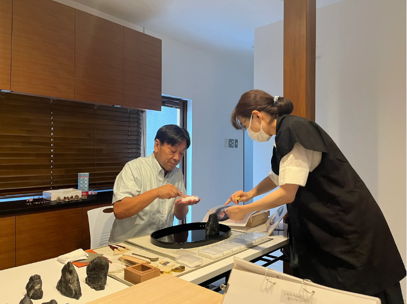 Learn Hosokawa-style Bonseki at the tranquil Yusuitei and create your own landscape painting on a tray. After learning the history and significance of Hosokawa-style Bonseki from a professional instructor, you'll handle traditional tools and arrange sand and stones to delicately portray natural landscapes like mountains, water, and islands. This unique cultural experience, unique to Kumamoto, offers both tranquil immersion and healing, as if you were translating a centuries-old Japanese garden onto a palm-sized tray.