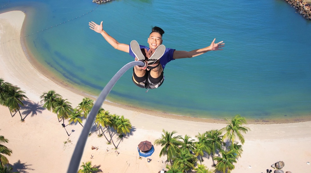 Free entry to the Skybridge before and after the jump offers stunning views of Sentosa.