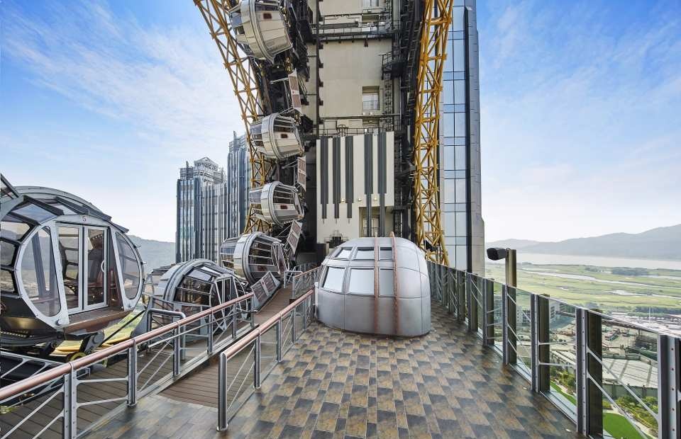 Depart from the 23rd floor platform at a height of 130 meters and enjoy panoramic views of the Cotai Strip.