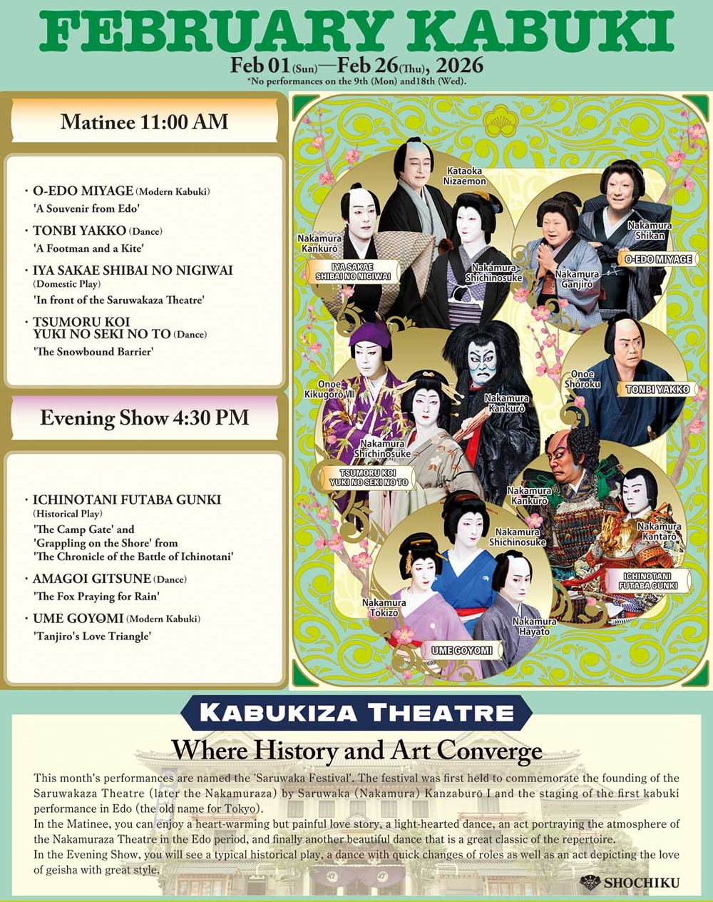 ※ Performance composition, detailed production, cast, and some running times are subject to change. Please check the latest monthly program before booking.