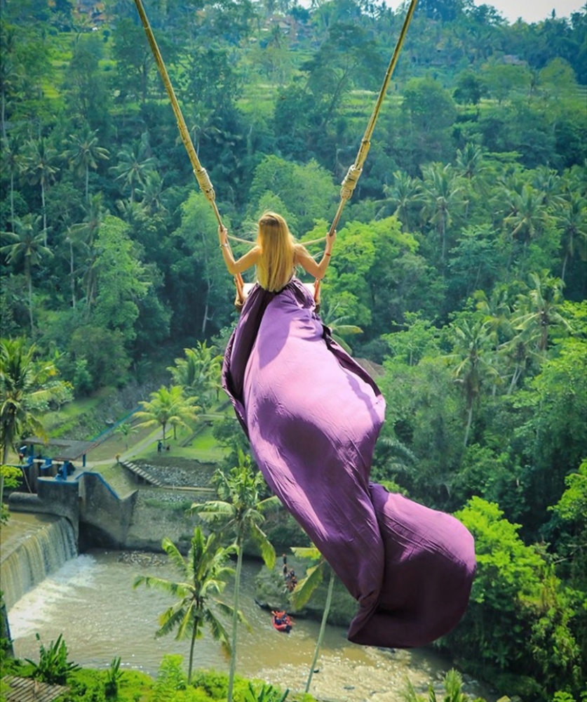 Capture stunning photos under Ubud's majestic waterfall.