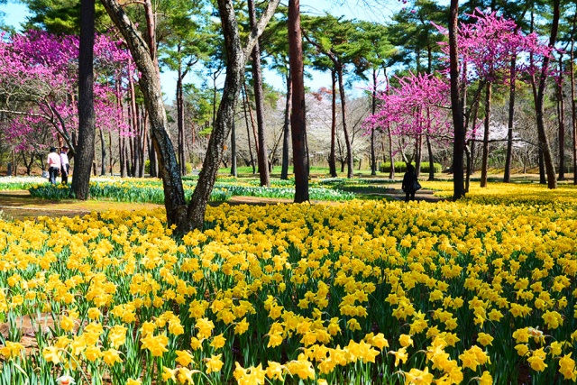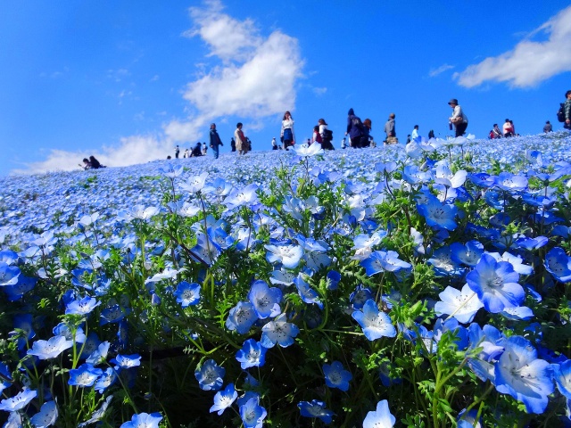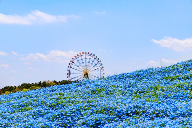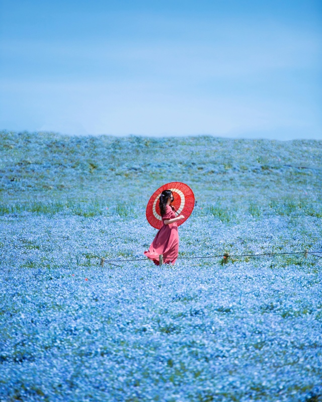 Your first stop is Hitachi Seaside Park, where you'll encounter a breathtaking sea of 5.3 million Nemophila flowers. Wander along Miharashi Hill and capture the best photos of your life amidst a mystical landscape where the sky, sea, and land blur together.