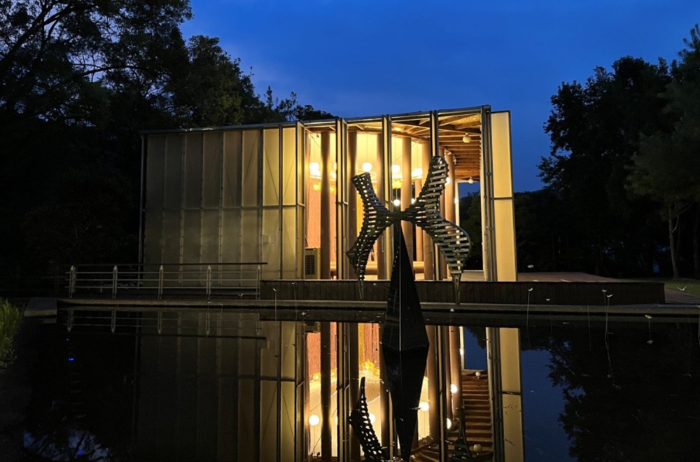 Immerse yourself in the tranquil atmosphere of the 'Paper Dome', a symbol of regeneration that overcame the disaster. The geometrical beauty created by the paper pillars and the greenness of the ecological village combine to offer warm comfort to tired minds.