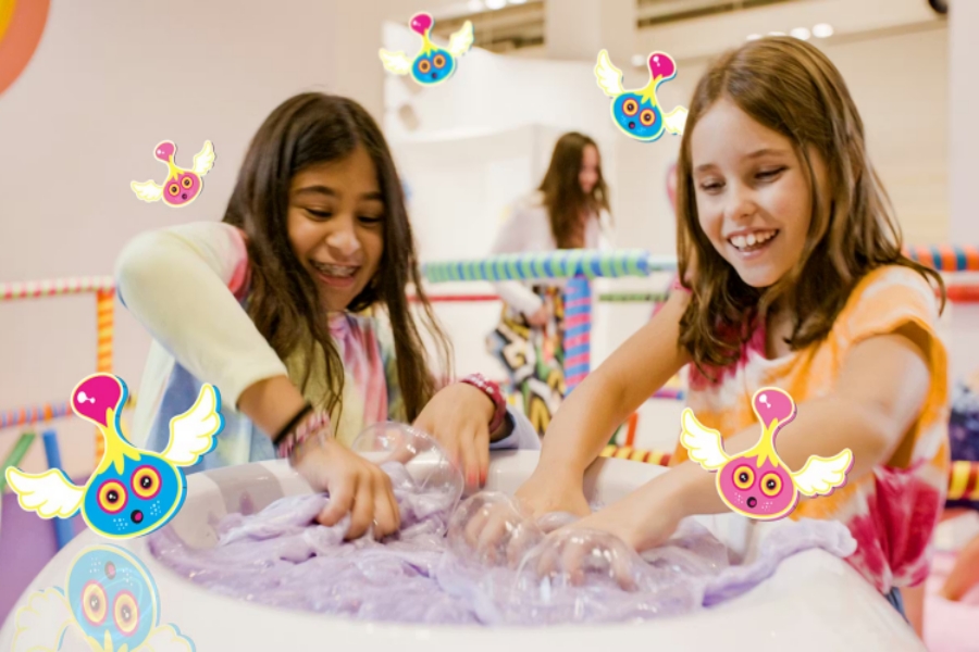 Design your own slime with over 4 million unique combinations at a massive 150-foot DIY bar. Choose from dozens of scents, colors, and charming parts to complete your own unique 8-ounce custom slime.