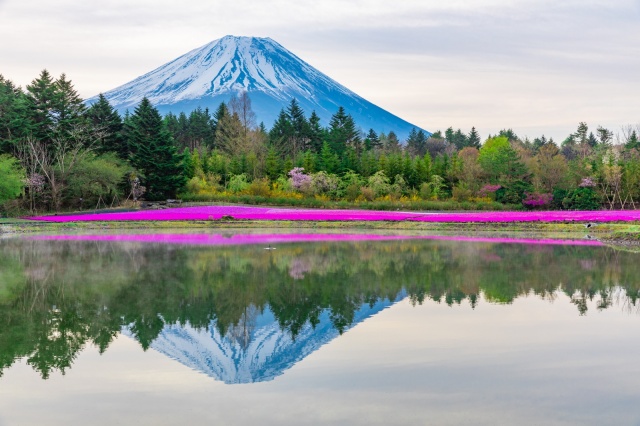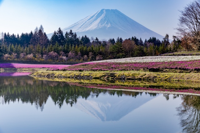 The pink, white, and purple moss phlox embroidered on the vast plain create a spectacular view as if a huge carpet has been laid out. This overwhelming scenery, set against the backdrop of Mount Fuji, a World Heritage Site, makes every moment you press the camera shutter a picture of your life.