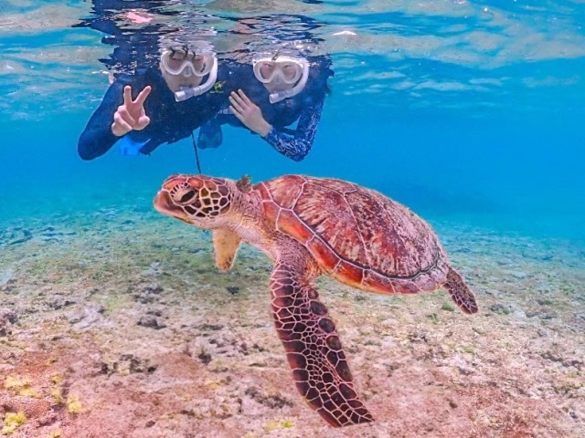Discover a special moment swimming with sea turtles in the blue sea of Miyakojima, boasting world-class encounter rates.