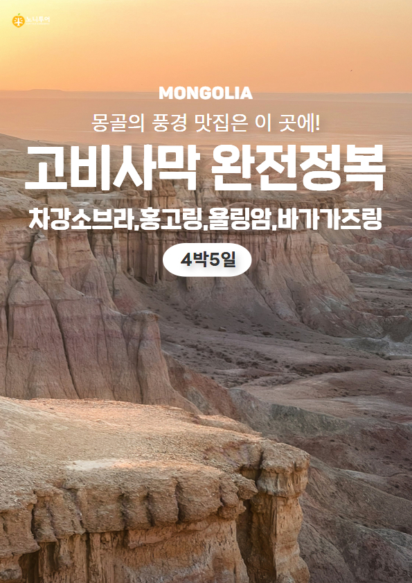 This is an ice valley hidden in the desert, Gobi's Switzerland where you can feel the cool air even in the middle of summer. You can enjoy Mongolia's diverse vegetation and fresh air through trekking and horseback riding experiences that cut through the bizarre rocks.