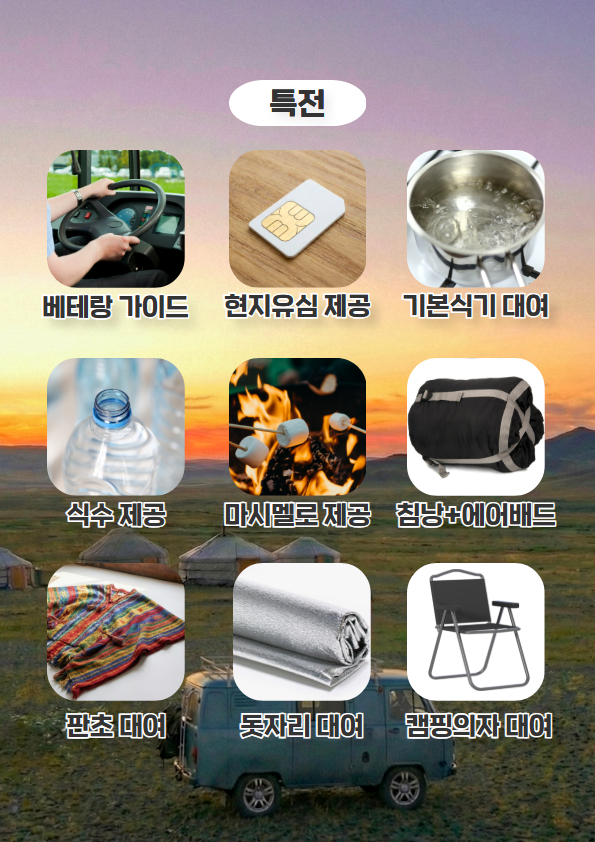 A veteran driver with skilled driving on Mongolia's rough roads and a Korean-speaking guide who can freely communicate will be responsible for your journey. With a private configuration that can be selected according to the number of people, you can enjoy traveling at your own pace with family or friends without being disturbed.