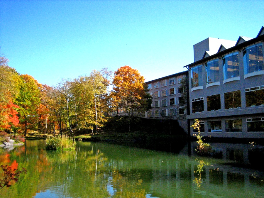 Witness the spectacular sight of red and yellow autumn leaves reflected on the lake's surface. Walks along the paths in the crisp air bring deep tranquility.