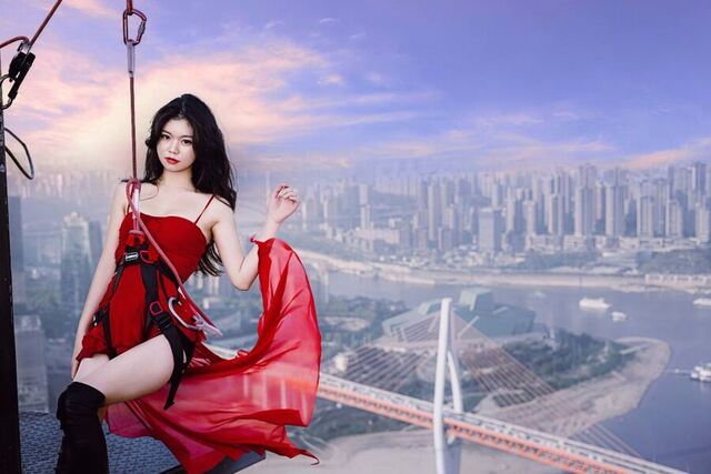 Try out new poses while suspended in the air with professional safety equipment. Whether you're gently sweeping your hair aside with one hand or smiling at the camera with your clothes fluttering in the river breeze, you'll become one with the Chongqing skyline.