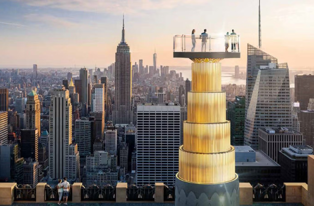 Don't miss The Beam, a thrilling experiential attraction. Inspired by the famous photograph of construction workers eating lunch on a steel beam during the 1930s construction of Rockefeller Center, The Beam offers a unique experience: sit on a beam that slowly rises into the air, providing stunning views of the New York skyline. Create unforgettable, movie-like moments.