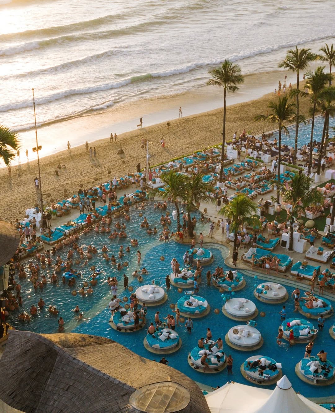 An icon of Canggu, Finns boasts the most vibrant atmosphere in Bali. Watching the sunset with DJ beats at the infinity pool beneath the massive bamboo structure is an overwhelming experience. It's the best choice for those seeking a high-energy party vibe with travelers from all over the world.