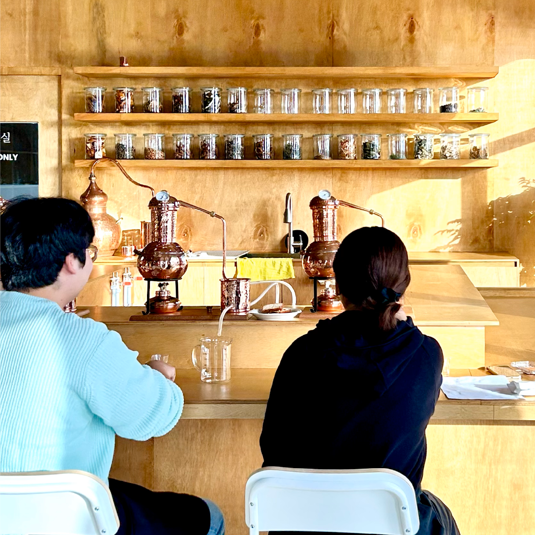 Gin is a distilled spirit flavored with juniper berries and various botanicals. Jeju Gotjawat actively uses Jeju's wild plants in this process. In the class, you'll get to touch and smell exotic yet familiar Jeju ingredients like tangerine peels, torreya nucifera, and Zanthoxylum piperitum to design your own recipe.