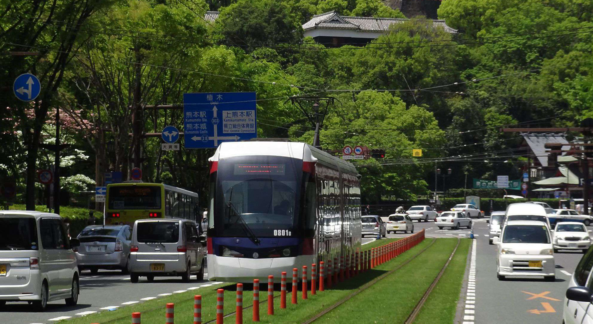 Enjoy the charm of Kumamoto's iconic trams as they glide through the city.