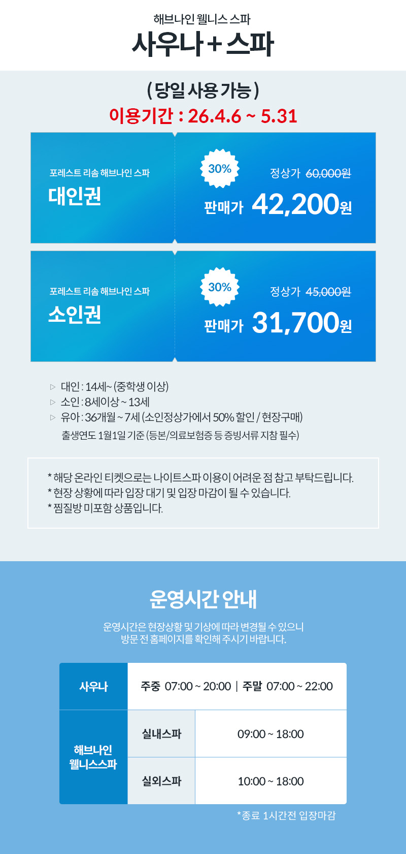 실외스파 : 오전 10:00 ~ 오후 18:00