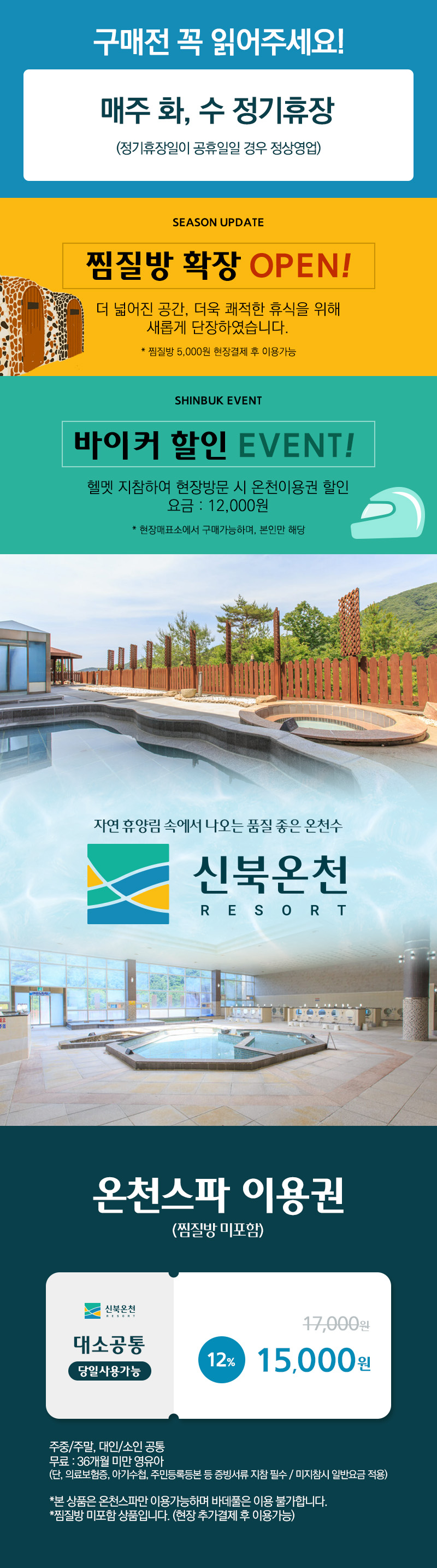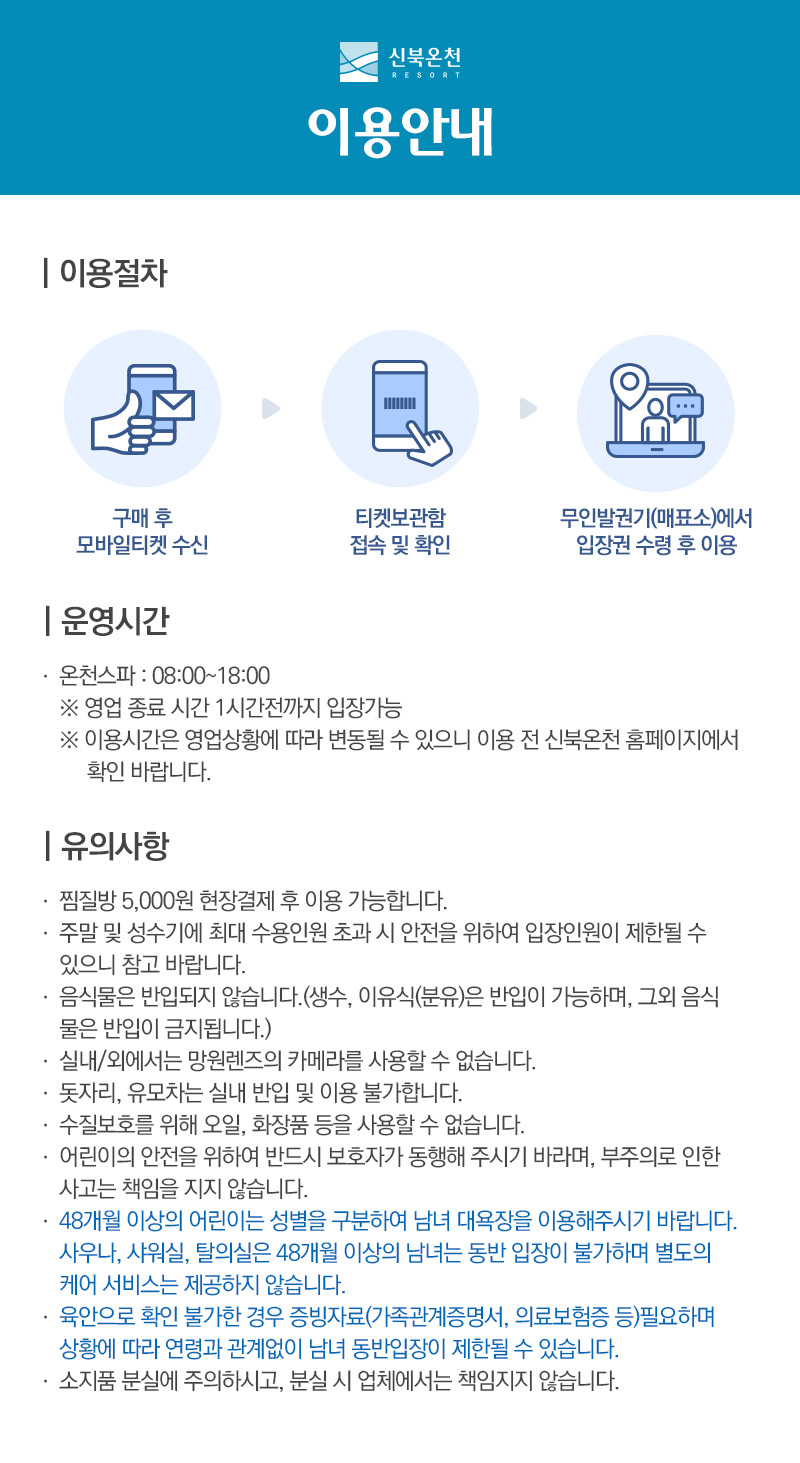 * 이용시간은 영업상황에 따라 변동될 수 있으니 이용 전 신북온천 홈페이지 확인 바랍니다.