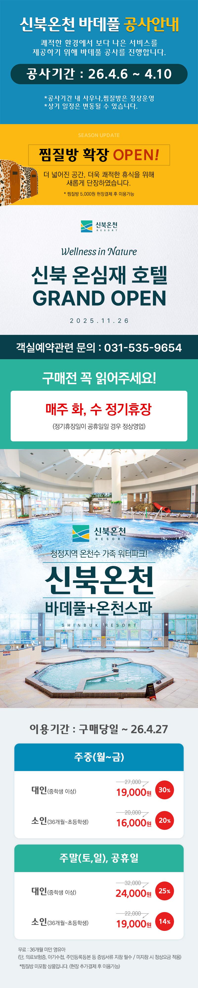※ 이용시간은 영업상황에 따라 변동될 수 있으니 이용 전 신북온천 홈페이지 확인 바랍니다.