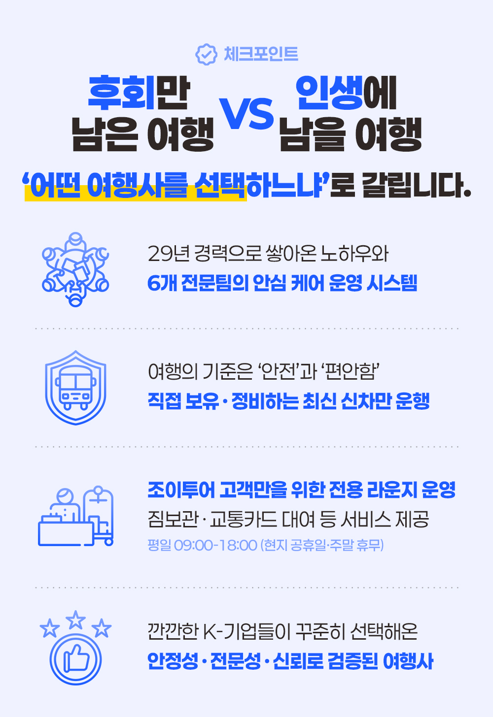 유동적인 관광지 이용시간으로 인해, 투어 1~2일 전 확정 미팅 시간에 대한 리마인드 문자 / 알림톡을 발송 드립니다.
