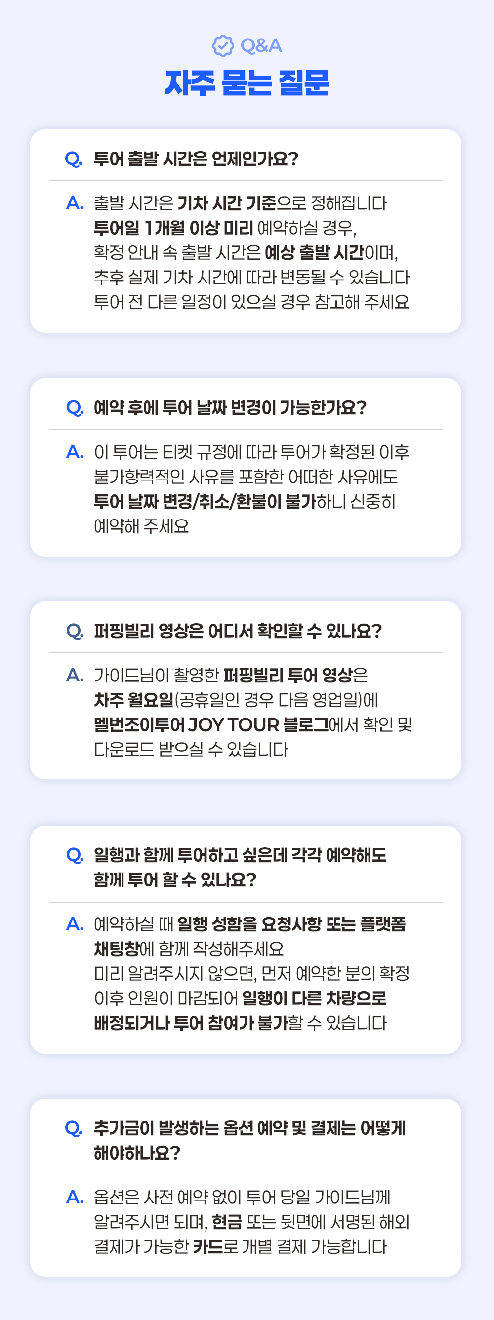 * 유동적인 퍼핑빌리 기차 배정 시간으로 인해 정확한 출발 시간은 예약 확정시 또는 투어 전날 집결 리마인드를 통해 다시 안내 드립니다. 꼭 확인 부탁 드립니다.