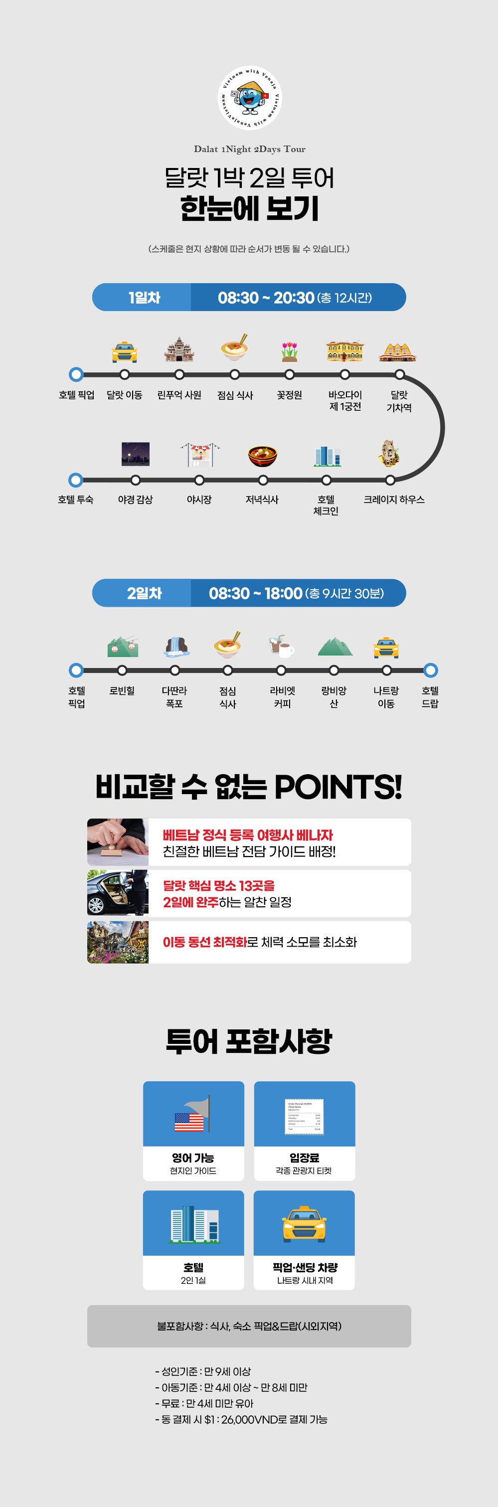 * 정확한 픽업 시간 및 투어 안내 사항은 투어 하루 전 현지 시각 오후 7시에 연락드려요.