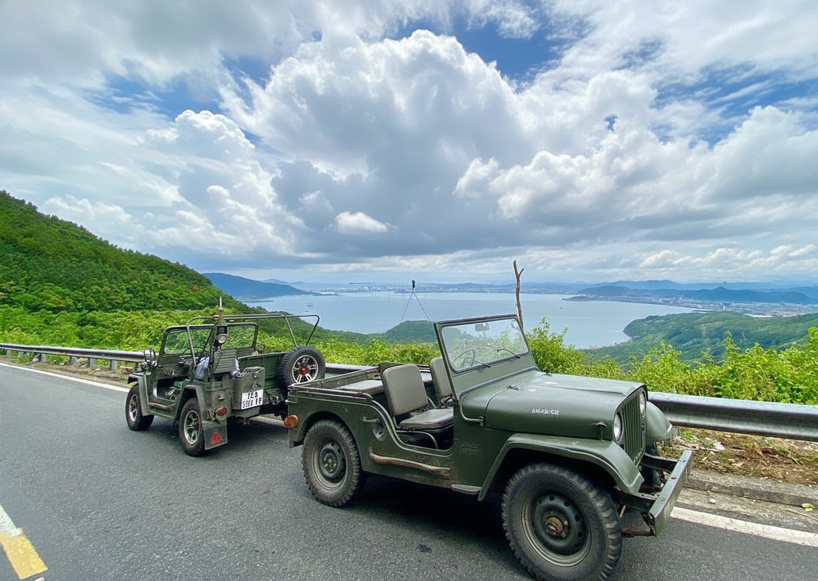 창문이 뚫린 지프를 타고, 다낭의 랜드마크를 하나씩 훑어보는 이색 투어를 소개해요! 미케비치 해변도로에서 시작해 선짜 반도의 관광지들을 둘러본 뒤, 미케비치 오션뷰 카페에서 마무리되어 기승전결이 모두 있는 일정이에요.