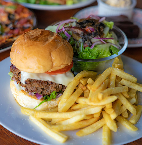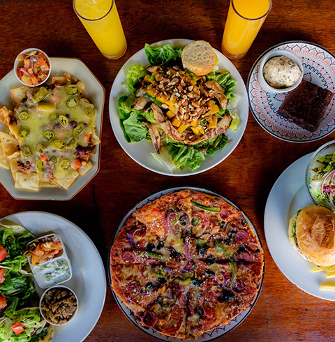 - C 세트 : 치즈 나초, 치킨 & 스테이크 타코, 치킨 망고 샐러드, 햄버거, 피자, 브라우니, 탄산음료 2잔 (3~4인)