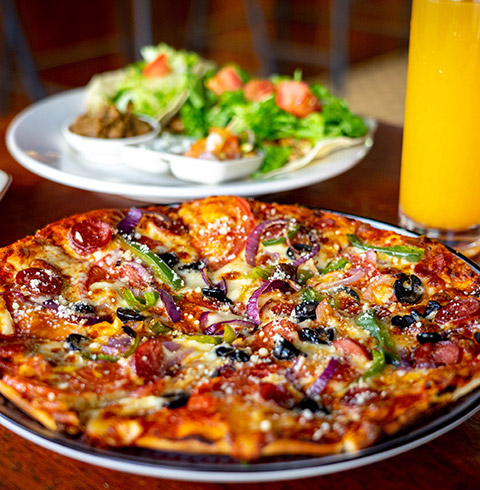 - B 세트 : 치킨 망고 샐러드, 치킨 & 양파 타코, 피자, 탄산음료 1잔 (2~3인)