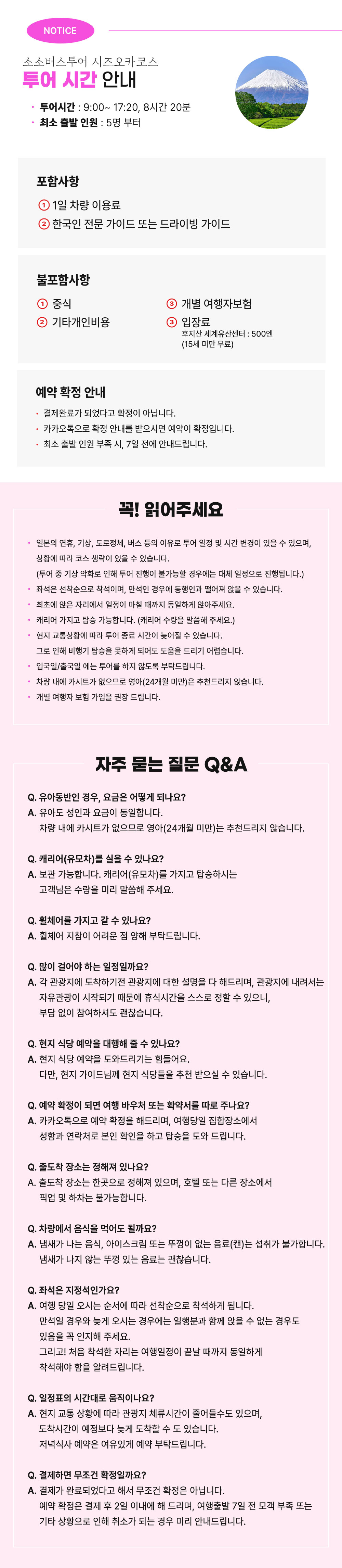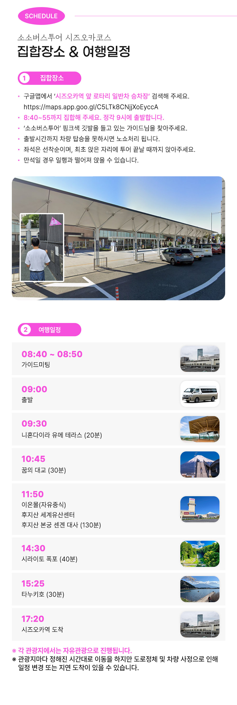 * 버스는 정각에 출발하니 늦지 않게 집합 장소로 모여 주시기 바랍니다.