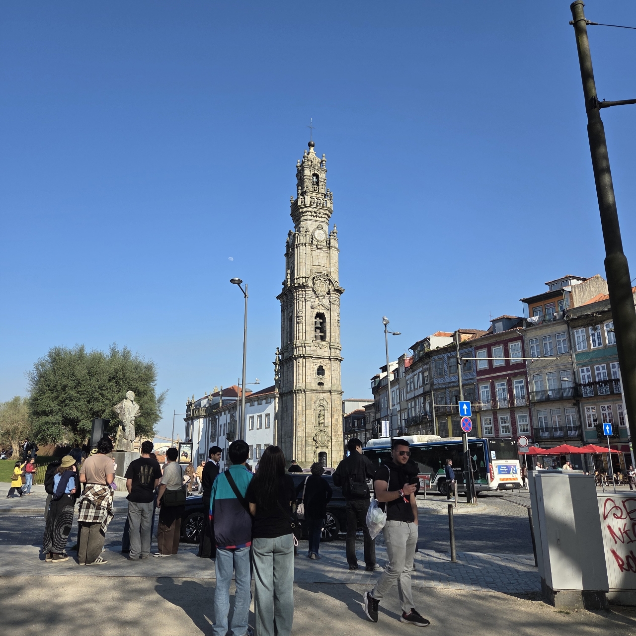 사자상 분수대 맞은편 포르투 대학교 중앙 아래 그늘