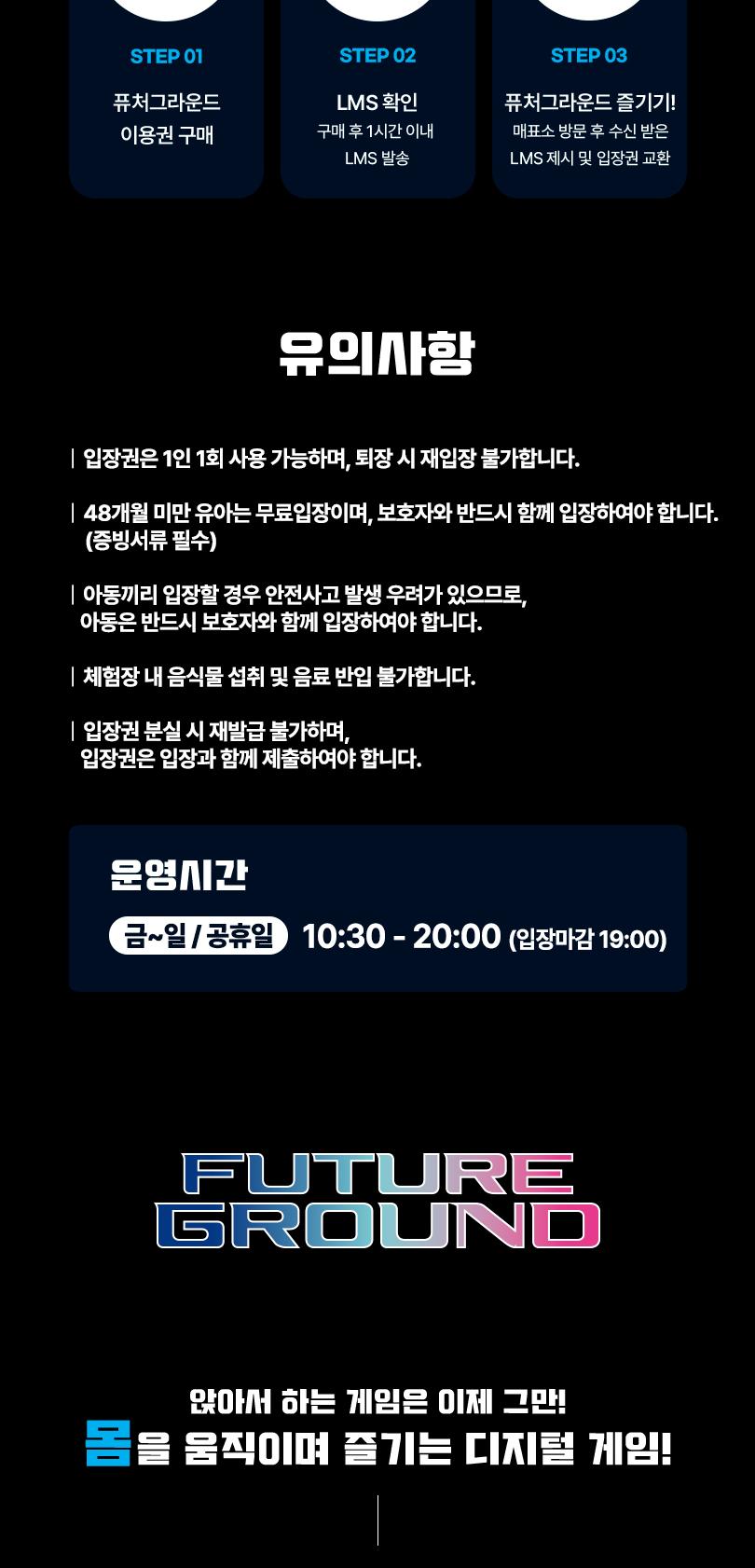 한국어 제공김포공항에서 비행기 기다리는 시간, 아이와 함께 특별한 시간을 보내고 싶다면 퓨처그라운드 김포공항점으로 놀러오세요. 빛과 움직임에 반응하는 인터랙티브 공간에서 아이들은 몸을 움직이며 자연스럽게 몰입하고 어른도 함께 빠져드는 새로운 감각의 디지털 플레이를 경험할 수 있어요.
