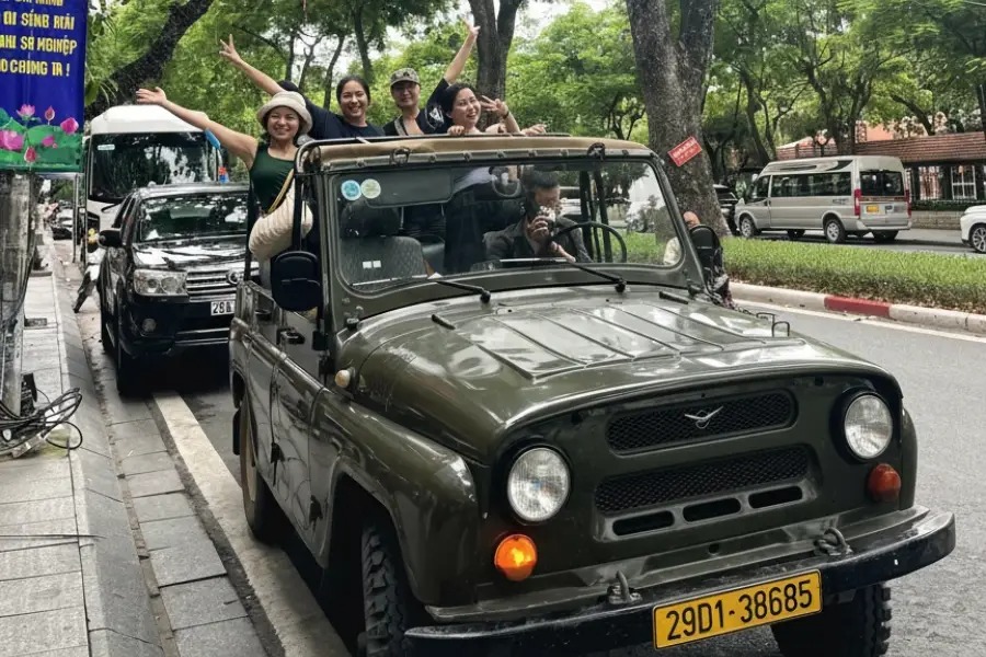 투어의 하이라이트는 빈티지 지프를 타고 즐기는 하노이 야경 드라이브예요. 도시의 불빛이 켜지면서 골목과 광장이 살아나는 모습을 감상할 수 있답니다.