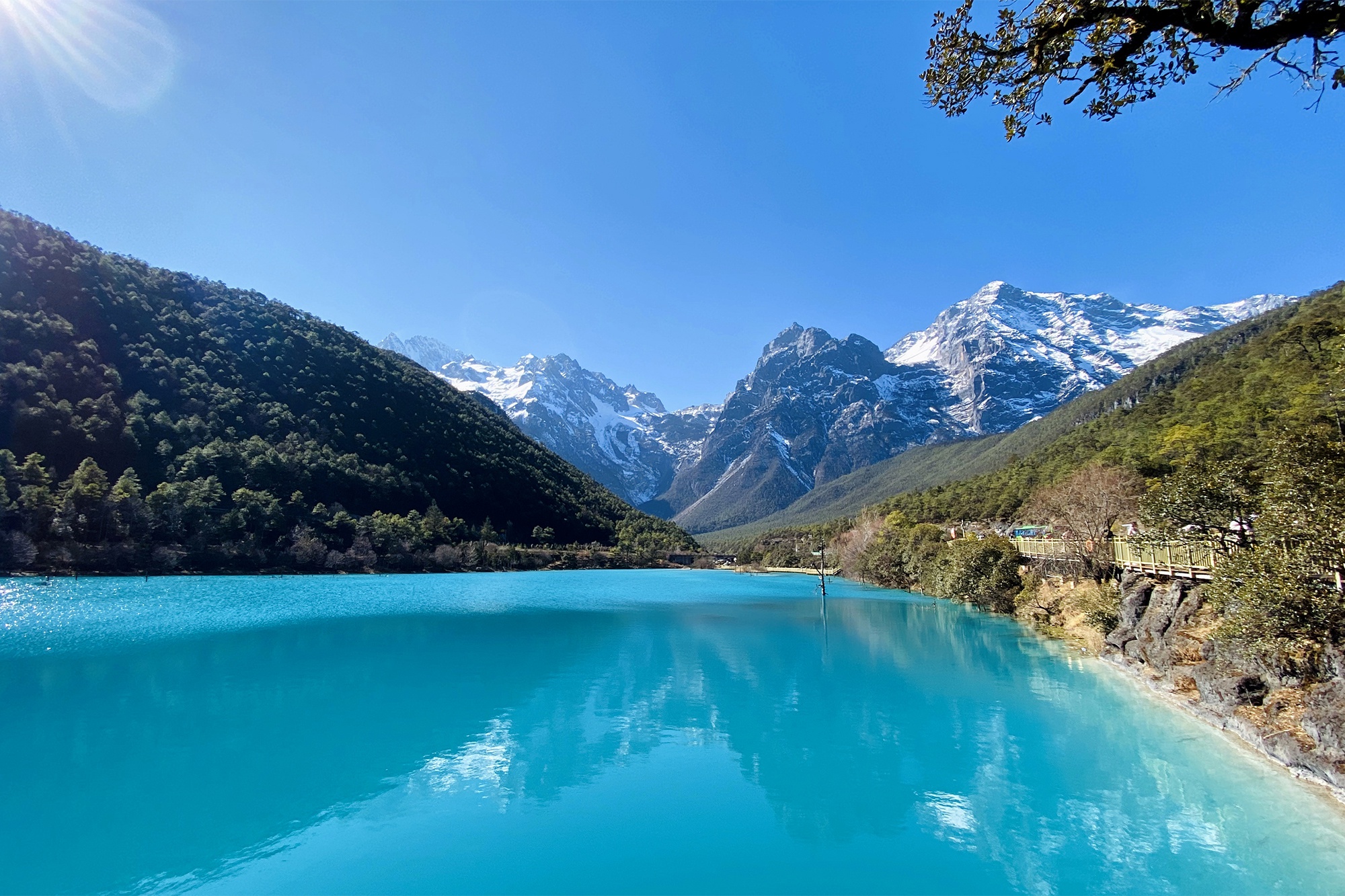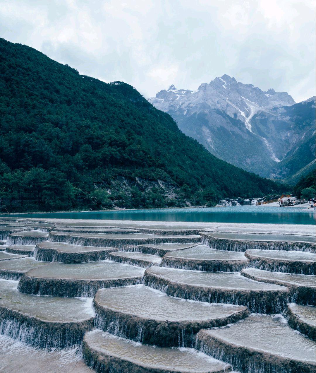 빙하가 녹아 형성된 계곡으로 햇빛의 각도와 날씨에 따라 물빛이 에메랄드, 청록, 터키블루 등 다양한 색으로 변하는 신비로운 장소예요. 잔잔한 수면 위로 설산이 비치는 장면은 대표적인 포토 스팟으로 손꼽히며, 어디에서 찍어도 그림 같은 풍경을 남길 수 있어요.