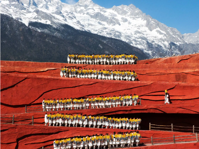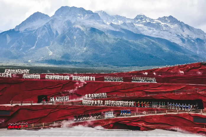세계적인 감독 장예모가 연출한 초대형 야외 공연으로, 옥용설산을 그대로 무대 배경으로 사용해 압도적인 현장감을 느낄 수 있어요. 전문 배우가 아닌 500여 명의 현지 주민들이 참여해 나시족의 전통과 삶을 춤과 민요로 표현하며, 화려한 색감과 웅장한 연출이 어우러져 공연 내내 몰입감을 선사해요.