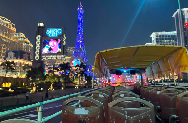 마카오 관광 필수 코스, 황홀한 야경을 오픈탑 버스를 타고 감상해 보세요. 무려 14개의 마카오 야경 스팟을 모두 둘러보며 오픈탑 위에서 시원한 바람을 맞으면서 만나볼 수 있어요. 특히 여행 마지막이나 하루 일정의 끝에 화려한 버스 야경 투어를 경험해보길 추천해요.