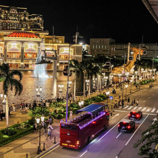 마카오 반도의 외항 페리 터미널에서 출발해 화려한 호텔들과 야경을 감상하고 타이파 반도까지 둘러봐요.