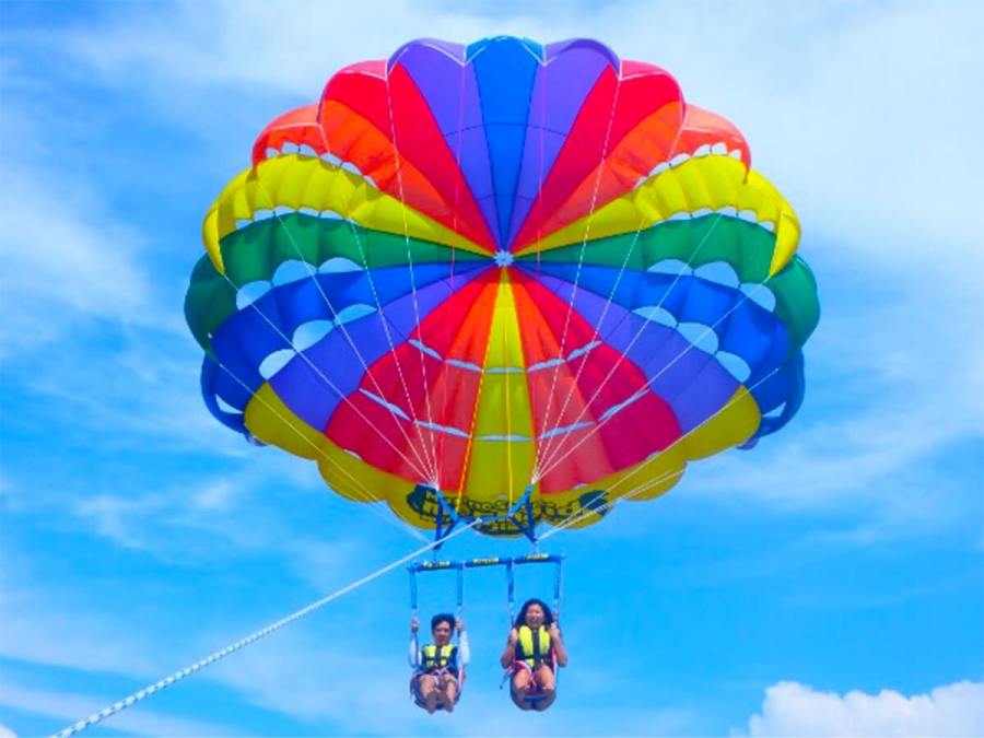 往復乗船料、保険料、パラソル1グループ(4名)に1台、ボートシュノーケルツアー費(レンタル機材含む)、パラセーリング体験費