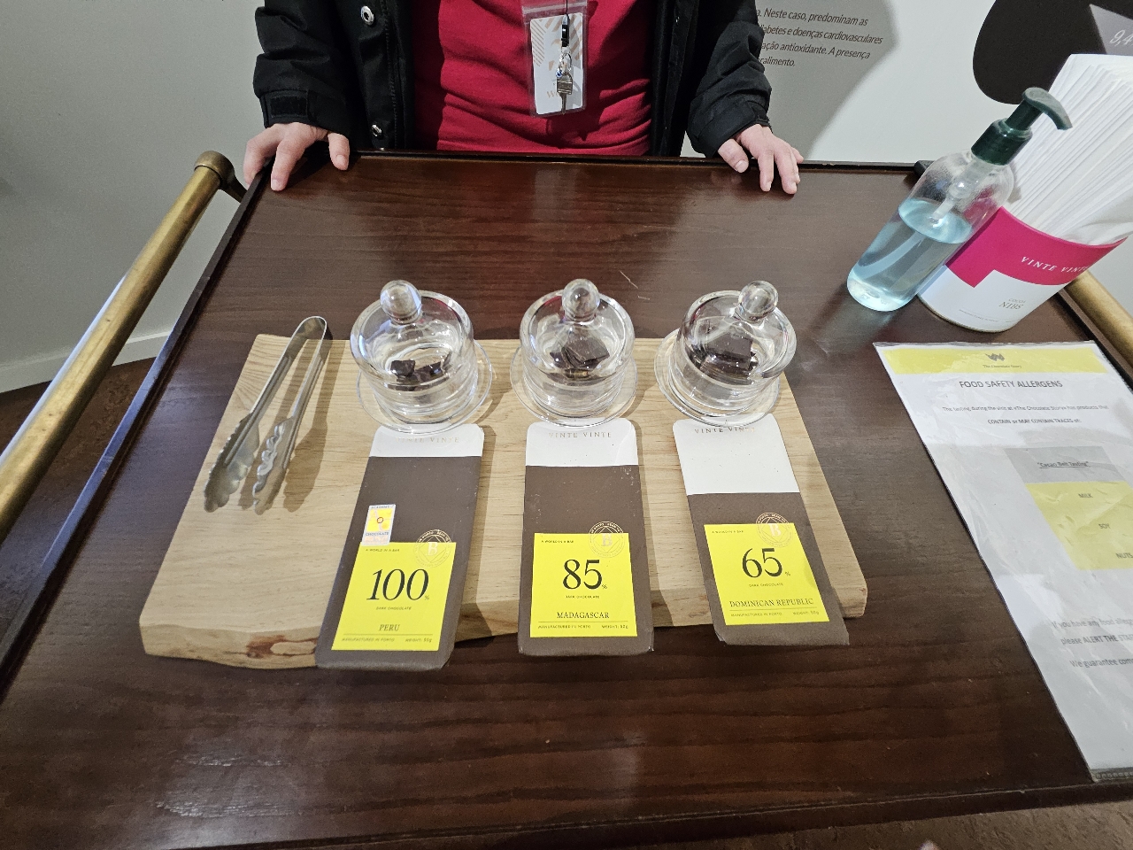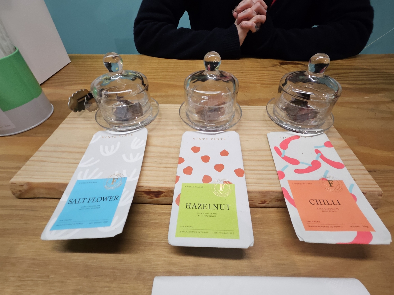 ポルトで生産したポートワインの特徴は、果物の香りが豊かで度数が高いという特徴があります。 ということで、甘いデザート、特にチョコレートとチーズに合うワインだそうです。 チョコレートを作ってみる体験に参加した後、WOW建物で購入したワインと一緒に添えてみてください!