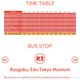 東京スカイホップバス(SKY HOP Bus)の3つのコース(レッド、ブルー、グリーン)の停留所から自由に乗車できます。